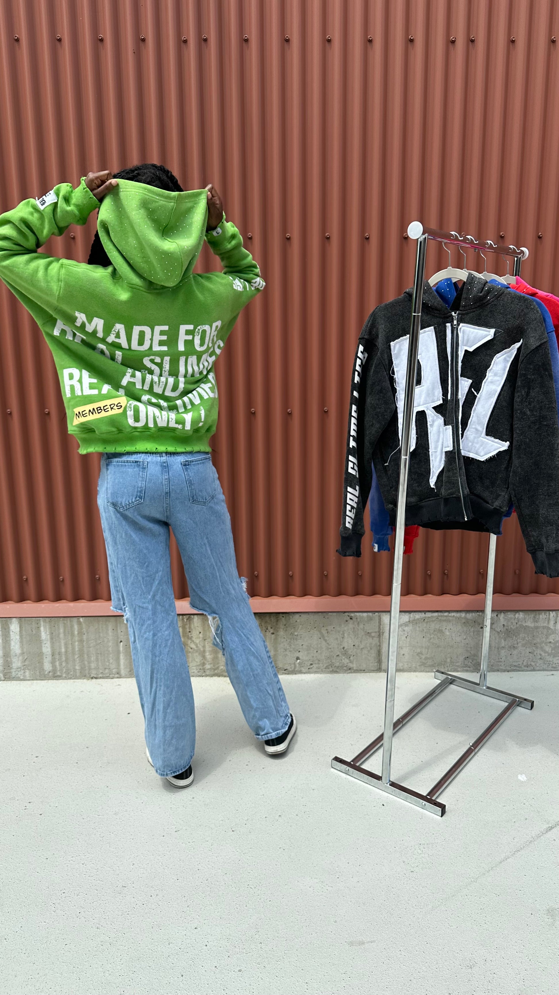 Green “Members Only” zip-up