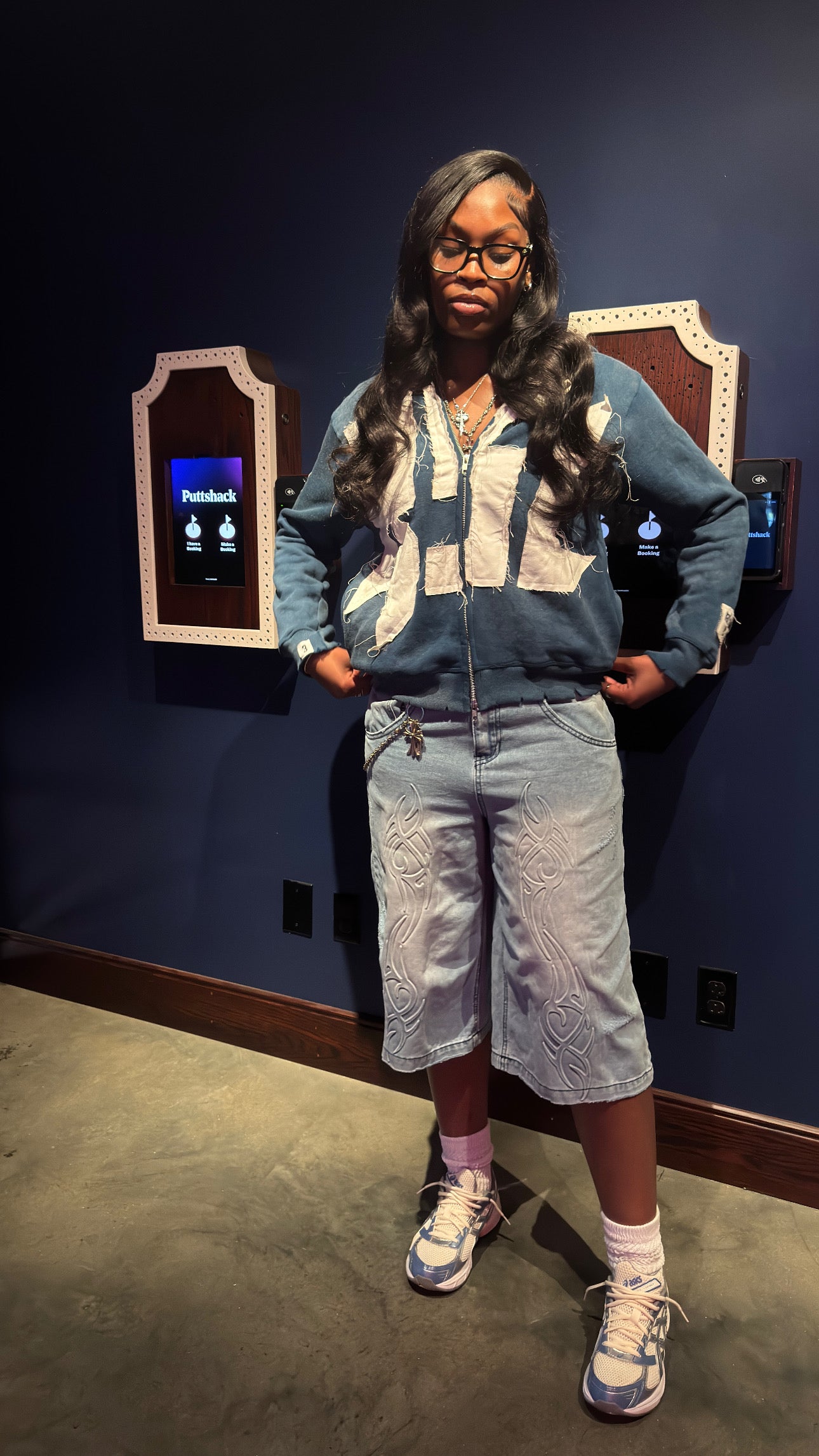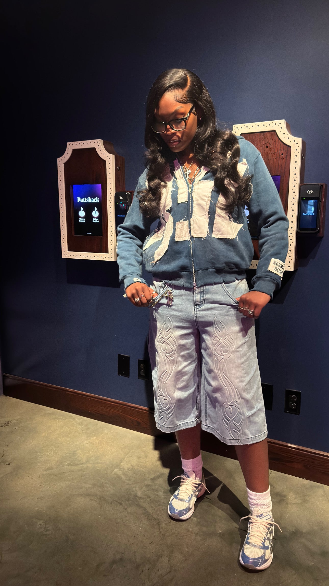 -Distressed wrist cuffs and waistband